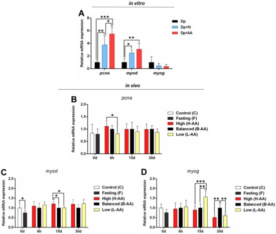 2.3. AA Supplementation Affects Genes Expression In Vitro and In Vivo