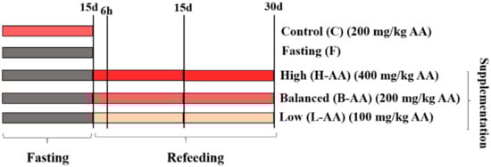 Zanella, B.T.T.; Magiore, I.C.; Duran, B.O.S.; Pereira, G.G.; Vicente, I.S.T.; Carvalho, P.L.P.F.; Salomão, R.A.S.; Mareco, E.A.; Carvalho, R.F.; Paula, T.G.d.; et al. Ascorbic Acid Supplementation Improves Skeletal Muscle Growth in Pacu (Piaractus mesopotamicus) Juveniles: In Vivo and In Vitro Studies. Int. J. Mol. Sci. 2021, 22, 2995. https://doi.org/10.3390/ijms22062995