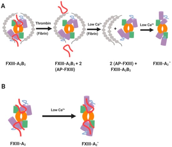 - Ichinose, A. Physiopathology and Regulation of Factor XIII. Thromb. Haemost. 2001, 86, 57–65. [Google Scholar] [CrossRef] [PubMed]
