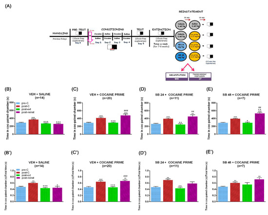 - Rodriguez-Arias, M.; Castillo, A.; Daza-Losada, M.; Aguilar, M.A.; Minarro, J. Effects of extended cocaine conditioning in the reinstatement of place preference. Physiol. Behav. 2009, 96, 620–630. [Google Scholar] [CrossRef]