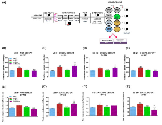2.1. D3 Antagonism Did Not Prevent the Reinstatement of the CPP Induced by a Cocaine Prime but Did Block the Reinstatement of the CPP Induced by Social Defeat