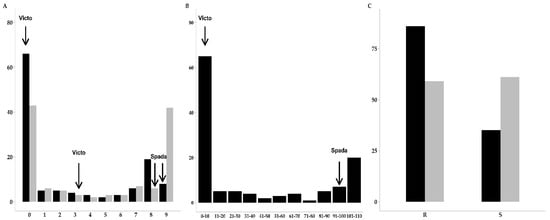 2.2. Construction of the Victo x Spada Genetic Linkage Map