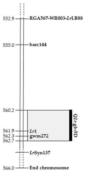 | QLr.gb-5D | RDS leaf rust | 5D | IWB11400 | 104.2 | 28.4 | 59.3 | −28.599 | 103.1–105.3 |