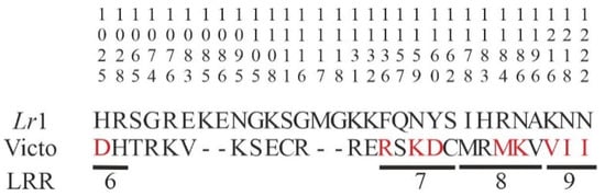 - Cloutier, S.; McCallum, B.D.; Loutre, C.; Banks, T.W.; Wicker, T.; Feuillet, C.; Keller, B.; Jordan, M.C. Leaf rust resistance gene Lr1, isolated from bread wheat (Triticum aestivum L.) is a member of the large psr567 gene family. Plant Mol. Biol. 2007, 65, 93–106. [Google Scholar] [CrossRef] [PubMed]