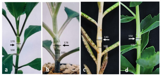 Microscopic observations were also carried out on K. tubiflora (Figure S2) and S. spectabile (Figure S3) to analyze the processes of local stem swelling formation induced by NPA (0.4%, w/w in lanolin).