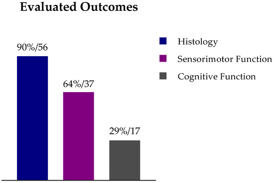 Even though there were differences between the studies regarding the lesion severity and treatment protocol, the vast majority reported an improvement in motor and cognitive function after BM-MSCs administration [54,55,56,57,58,59,60,61,62,63,64,65,66,67,68,69,70]. The majority of the studies reported that BM-MSCs treatment decreased brain damage [54,56,58,59,60,61,62,63,67], prompting a decrease in apoptosis [54,64,73]. These positive effects were accompanied by the increase in cell proliferation [57,61], number of mature neurons count [56,67,80], anti-inflammatory cytokine levels [73], promotion of neuronal repair mechanisms [56]; and a decrease in microglial activation [54,57,62,67,80] and astrogliosis [62,69], as well as neuroinflammation [82].