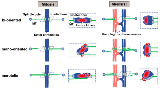 - Yoshida, S.; Kaido, M.; Kitajima, T.S. Inherent Instability of Correct Kinetochore-Microtubule Attachments during Meiosis I in Oocytes. Dev. Cell 2015, 33, 589–602. [Google Scholar] [CrossRef]