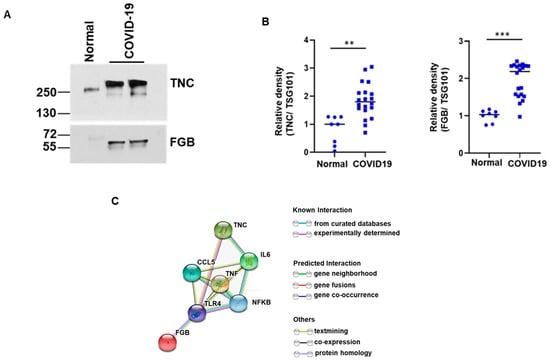 2.2. Exosomes from Plasma of COVID-19 Patients Harbor Tenascin-C and Fibrinogen-Β