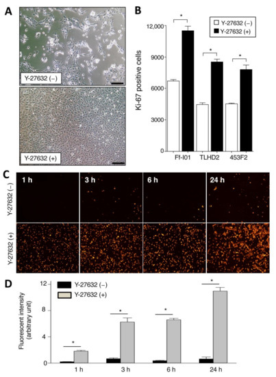 The ROCK inhibitor Y-27632 (1, 10, 50, or 100 µM: Wako) was added to the DMEM medium plus 10% fetal bovine serum (FBS) in some assays.