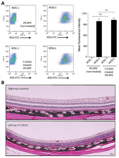The following are available online at https://www.mdpi.com/1422-0067/22/6/3237/s1, Figure S1. Detection of pMLCII in Y-27632-RPE cells, Figure S2. Suppression of cytokines in Y-27632-RPE cells & capacity of Y-27632 to suppress lymphocytes, Figure S3. Toxicity of iPS-RPE cells by Y-27632, Figure S4. Retinal toxicity in a non-human primate by Y-27632, Figure S5. Transplantation of iPS-RPE cells in in vivo animal model without Y-27632.