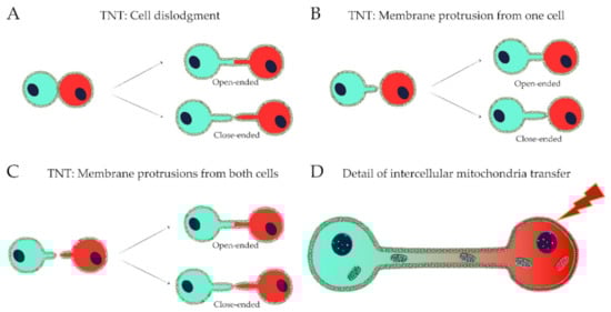 - Wang, X.; Gerdes, H.H. Transfer of mitochondria via tunneling nanotubes rescues apoptotic PC12 cells. Cell Death Differ. 2015, 22, 1181–1191. [Google Scholar] [CrossRef]