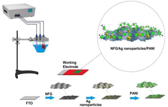 | NFG/AgNPs/PANI | NFG coating on FTOE + electropolymerization of PANI | CV | 10–11460 µM | 8 µM | Good reproducibility and excellent selectivity. | [209] | |