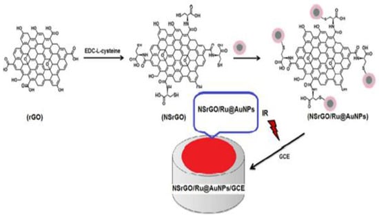 | NSrGO/Ru@ AuNPs | l-cysteine functionalization+ Ru@AuNPs grafting | SWV | 0.001–0.1 nM | 0.2 pM | Exceptional sensibility. | [220] |