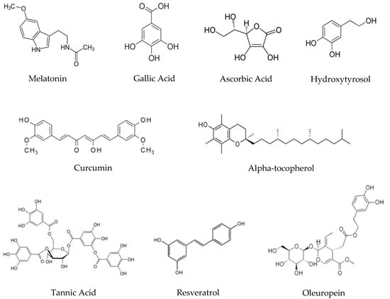 | Melatonin | Immunomodulatory Thermoregulatory Anti-aging Anticancer Photo-and radioprotective Cardioprotective Antiarrhythmic agent | Off-white powder Mw = 232.28 g/mol d25 °C = 1.175 g/cm3 Tm = 117 °C b.p. = 512.8 °C S20 °C = 2.0 g/L | Coffee, Tea Red wine, Beer Banana Tomatoes Rice, Wheat Corn, Oat | Control of hypertension, obesity, and metabolic syndrome Modulation of inflammatory markers Modulation of oxidative stress Sleep disorders/Insomnia treatment Parkinson and Alzheimer diseases | [52] |