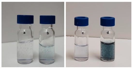 Images of the formulations (a) pure HA hydrogel, (b) HA-GP hydrogel, (c) pure HA hydrogel and (d) HA-NSP nanosystem (nanospheres + hydrogel).
