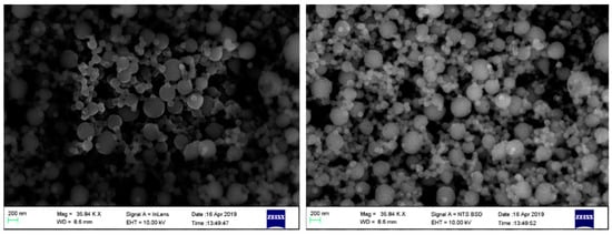 The size and morphology of the dried IgG loaded AZP nanospheres were examined using SEM and dynamic light scattering (DLS). The average diameter of the nanospheres ~145 nm for the blank sample and ~185 nm for IgG loaded nanospheres. The nanospheres showed a low PDI of 0.190, indicating uniformity and less aggregation in dispersion [25]. SEM micrographs in Figure 2 confirmed the spherical shape and the size of the nanospheres was <200 nm. The average diameter of the nanospheres slightly increased after the incorporation of IgG. This variation in size, displayed in Figure 3, may be attributed to the inclusion of a high molecular weight peptide [26]. A few spheres in the macro scale were observed and this large size may be due to overlapping of the nanospheres resulting from aggregation during solvent evaporation [27].