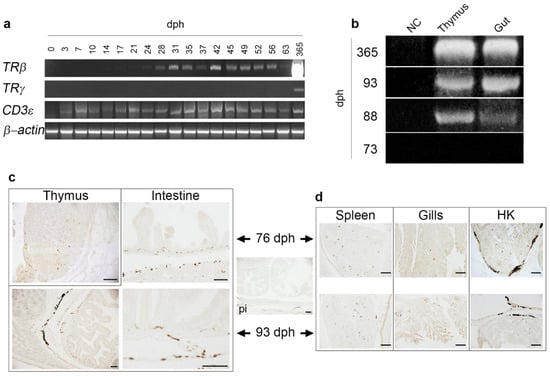 - Lee, Y.M.; Lee, J.-H.; Noh, J.K.; Kim, H.C.; Park, C.-J.; Park, J.-W.; Hwang, I.J.; Kim, S.Y. Stage and Tissue Specific Expression of Four TCR Subunits in Olive Flounder (Paralichthys olivaceus). Dev. Reprod. 2013, 17, 329–335. [Google Scholar] [CrossRef][Green Version]