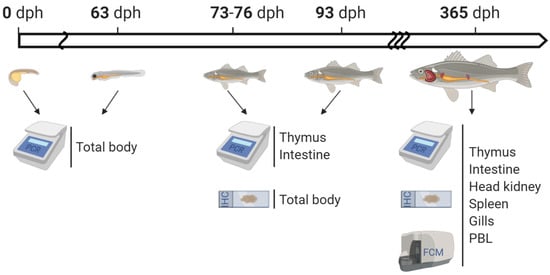 - Lam, S.H.; Chua, H.L.; Gong, Z.; Lam, T.J.; Sin, Y.M. Development and Maturation of the Immune System in Zebrafish, Danio rerio: A Gene Expression Profiling, in Situ Hybridization and Immunological Study. Dev. Comp. Immunol. 2004, 28, 9–28. [Google Scholar] [CrossRef]