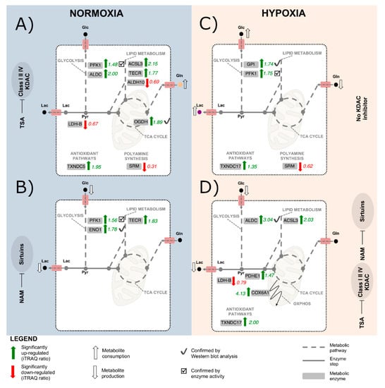 Martín-Bernabé, A.; Tarragó-Celada, J.; Cunin, V.; Michelland, S.; Cortés, R.; Poignant, J.; Boyault, C.; Rachidi, W.; Bourgoin-Voillard, S.; Cascante, M.; et al. Quantitative Proteomic Approach Reveals Altered Metabolic Pathways in Response to the Inhibition of Lysine Deacetylases in A549 Cells under Normoxia and Hypoxia. Int. J. Mol. Sci. 2021, 22, 3378. https://doi.org/10.3390/ijms22073378
