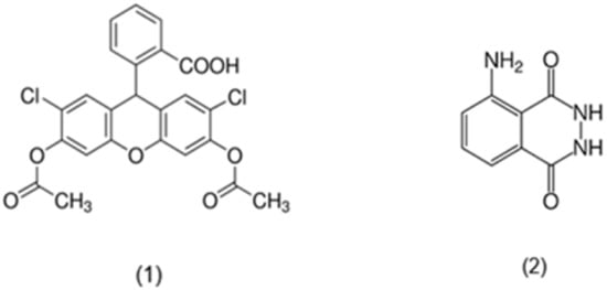 (1) Dihydrofluorescein diacetate; (2) Luminol.