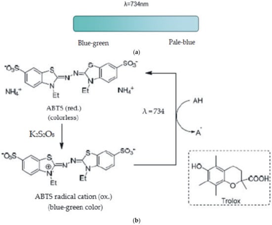 - Tian, X.; Schaich, K.M. Effects of molecular structure on kinetics and dynamics of the Trolox Equivalent Antioxidant Capacity assay with ABTS+•. J. Agric. Food Chem. 2013, 61, 5511–5519. [Google Scholar] [CrossRef]