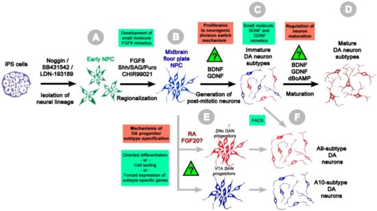 We only briefly outline here the primary differentiation cues involved in the development of midbrain DA neurons that constitute a basis of PSC differentiation protocols, while the detailed reviews of developmental biology of DA neurons are provided elsewhere [,,].