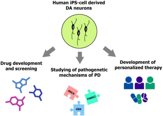 In vitro studies based on human iPS cell-derived DA neurons. Drug development and disease modeling with these cells represent rapidly advancing fields of modern research. The personalized therapy is a perspective area for future studies relying on patient-specific neurons, but due to paucity of currently available treatment options for PD and absence of approved targeted drugs it was not implemented into the practice to date.