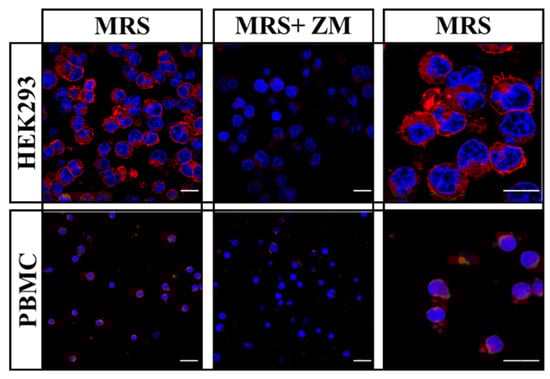 - Gessi, S.; Varani, K.; Merighi, S.; Ongini, E.; Borea, P.A. A(2A) adenosine receptors in human peripheral blood cells. Br. J. Pharmacol. 2000, 129, 2–11. [Google Scholar] [CrossRef]