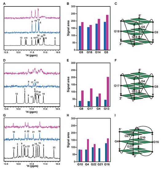 - Adrian, M.; Heddi, B.; Phan, A.T. NMR spectroscopy of G-quadruplexes. Methods 2012, 57, 11–24. [Google Scholar] [CrossRef]