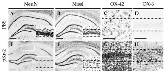 2.1. pKr-2 Induces Degeneration of Hippocampal Neurons and Activation of Microglia/Macrophages and Neutrophils in the Hippocampus In Vivo