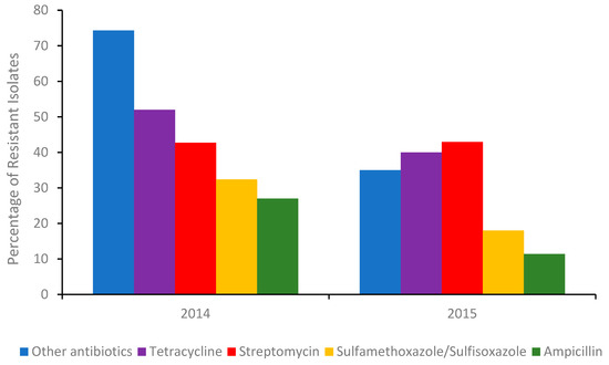 - USDA; FSIS; Food and Drug Administration (FDA). Retail Meat Interim Report. 2014–2015. Available online: https://www.fda.gov/downloads/AnimalVeterinary/SafetyHealth/AntimicrobialResistance/NationalAntimicrobialResistanceMonitoringSystem/UCM498134.pdf (accessed on 26 November 2020).
