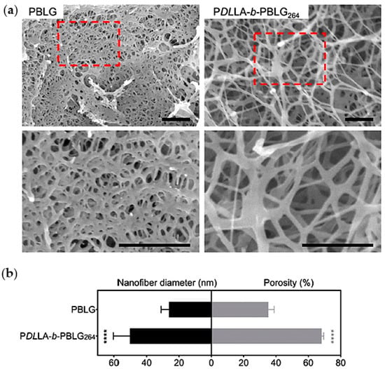 - Liu, X.; Ma, P.X. The nanofibrous architecture of poly(l-lactic acid)-based functional copolymers. Biomaterials 2010, 31, 259–269. [Google Scholar] [CrossRef] [PubMed]