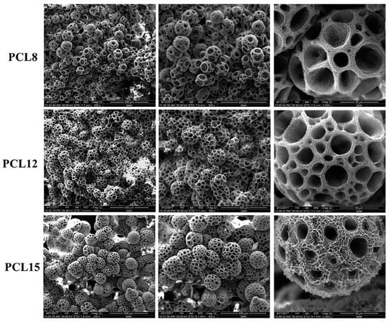 Correspondingly, Kozehkonan et al. used TIPS to produce PCL scaffolds with high porosity and pore interconnectivity. As a surface modification to overcome the hydrophobicity of PCL scaffolds, they coated the resulted scaffolds with chitosan (CS), bioactive glass (BG) and nanoparticles of gelatin (GEL). TIPS-obtained PCL scaffolds were highly porous, had variable pore sizes from several to a few hundred microns, and an appropriate pore interconnectivity. The applied surface modification improved the degradation rate and spreading tendency of the cells on the scaffolds. Compared to single or binary coating systems without BG, the proposed ternary system resulted in the highest mechanical strength and a significant improvement in MG-63 cell proliferation [].