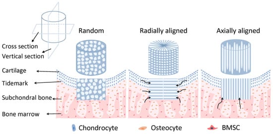 - Chen, P.; Tao, J.; Zhu, S.; Cai, Y.; Mao, Q.; Yu, D.; Dai, J.; Ouyang, H. Radially oriented collagen scaffold with SDF-1 promotes osteochondral repair by facilitating cell homing. Biomaterials 2015, 39, 114–123. [Google Scholar] [CrossRef] [PubMed]