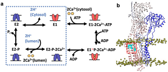 - Ramírez-Salinas, G.L.; Espinoza-Fonseca, L.M. Atomistic Characterization of the First Step of Calcium Pump Activation Associated with Proton Countertransport. Biochemistry 2015, 54, 5235–5241. [Google Scholar] [CrossRef]
