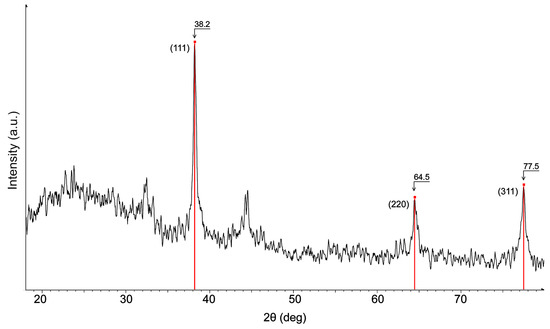 Powder X-ray diagram of sample AgNPs(ORLE) with the characteristic Bragg peaks of Ag nanoparticles.