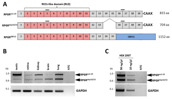 2.1. The RPGRskip14/15 Transcript Is Widely Expressed in Several Human Tissues