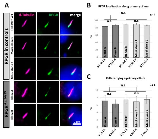2.5. RPGRskip14/15 Locates along the Axoneme of a Primary Cilium