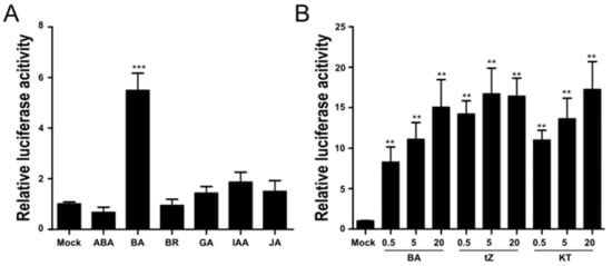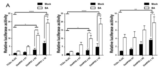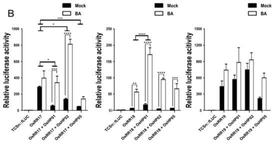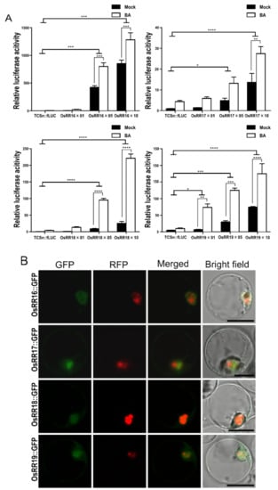 2.2. Type-B OsRRs Have Different Trans Activities and CK Responsiveness for TCSn Promoter