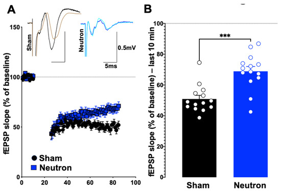 2.1. Cortical Synaptic LTD Is Perturbed by Chronic Low Dose Neutron Irradiation in Mice