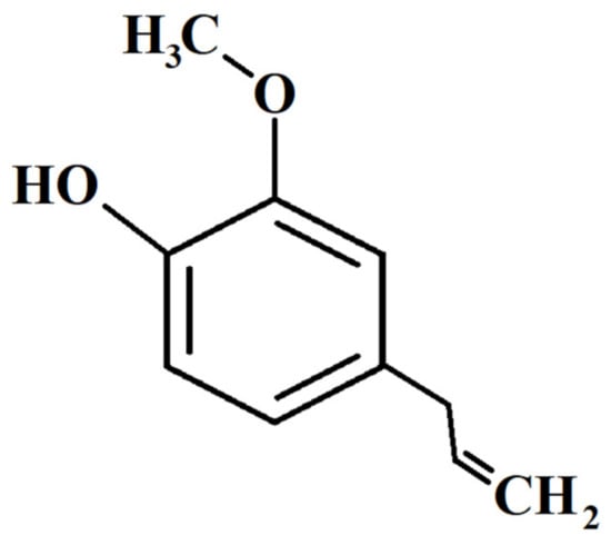 Eugenol is a clear to pale yellow liquid with an oily consistency and a spicy aroma. It is sparingly soluble in water and well soluble in organic solvents. Eugenol can be produced synthetically in two ways, one of which involves the allylation of guaiacol with allyl chloride. The biotechnological method is based on the biotransformation of a wide range of microorganisms, such as Corynebacterium spp., Streptomyces spp., and Escherichia coli [,,,].