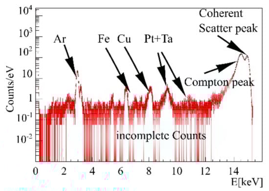 - Papp, T. On the response function of solid-state detectors, based on energetic electron transport processes. X-ray Spectrom. 2003, 32, 458–469. [Google Scholar] [CrossRef]