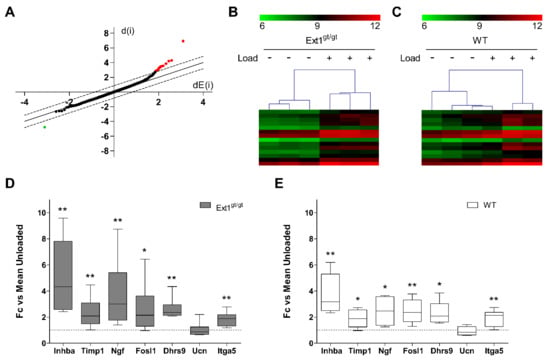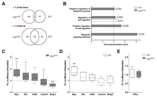 2.5. Induction of an Anti-Apoptotic Expression Signature in HS-Deficient Cartilage by Loading