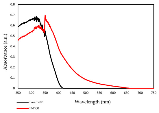 UV-Vis absorption spectrum of pure TiO2 and N-TiO2.