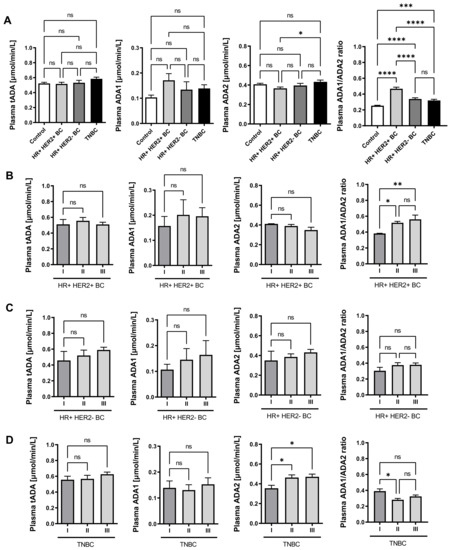 2.3. Plasma ADA Iso-Enzyme Pattern Is Adversely Deregulated in Different Subtypes Breast Cancers