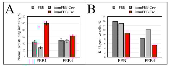 36]. Staining fibroblasts against Ki-67 revealed no correlation between the percentage of Ki-67-positive cells in primary and immortalized FEB1 lines, but demonstrated difference in case of FEB4 (