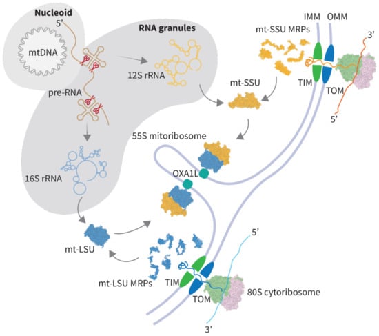 Lopez Sanchez, M.I.G.; Krüger, A.; Shiriaev, D.I.; Liu, Y.; Rorbach, J. Human Mitoribosome Biogenesis and Its Emerging Links to Disease. Int. J. Mol. Sci. 2021, 22, 3827. https://doi.org/10.3390/ijms22083827