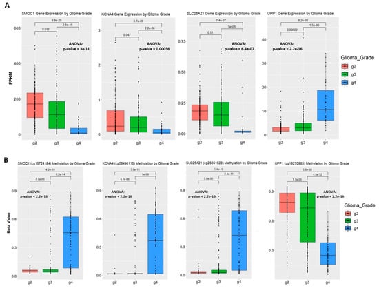 - Weng, J.Y.; Salazar, N. DNA Methylation Analysis Identifies Patterns in Progressive Glioma Grades to Predict Patient Survival. Int. J. Mol. Sci. 2021, 22, 1020. [Google Scholar] [CrossRef] [PubMed]