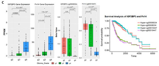 In Figure 4C, the p-value for the Fn14 (cg00510447) box plot is incorrect. Figure 4 should be replaced with the following figure (Figure 1).