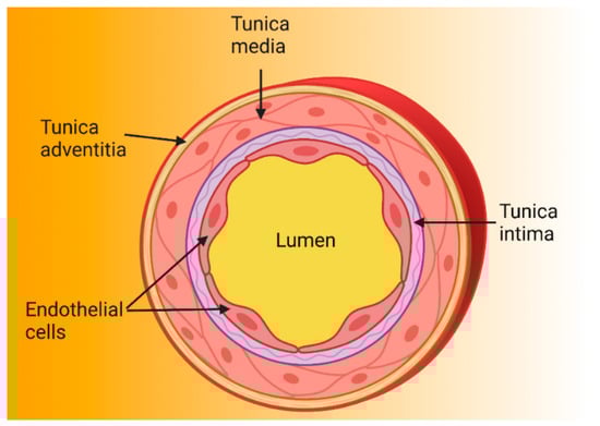 - Khaddaj Mallat, R.; Mathew John, C.; Kendrick, D.J.; Braun, A.P. The vascular endothelium: A regulator of arterial tone and interface for the immune system. Crit. Rev. Clin. Lab. Sci. 2017, 54, 458–470. [Google Scholar] [CrossRef]